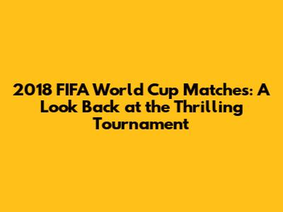2018 FIFA World Cup Matches: A Look Back At The Thrilling Tournament