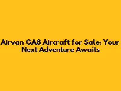 Airvan GA8 Aircraft For Sale: Your Next Adventure Awaits