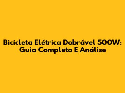 Bicicleta Elétrica Dobrável 500W: Guia Completo E Análise