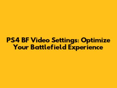PS4 BF Video Settings: Optimize Your Battlefield Experience