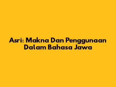 Asri: Makna Dan Penggunaan Dalam Bahasa Jawa