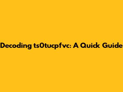 Decoding Ts0tucpfvc: A Quick Guide