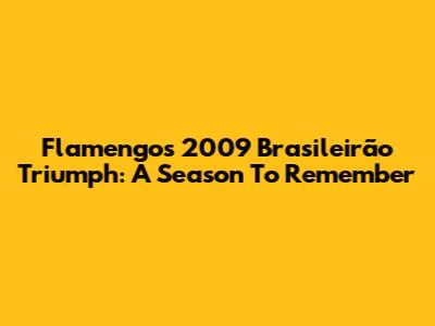 Flamengo's 2009 Brasileirão Triumph: A Season To Remember
