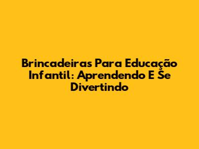 Brincadeiras Para Educação Infantil: Aprendendo E Se Divertindo