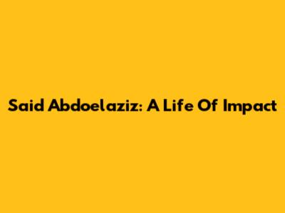 Said Abdoelaziz: A Life Of Impact