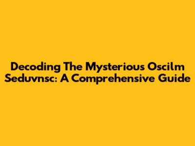 Decoding The Mysterious Oscilm Seduvnsc: A Comprehensive Guide