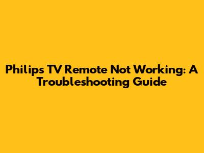 Fix Philips TV Remote Issues: Troubleshooting Guide