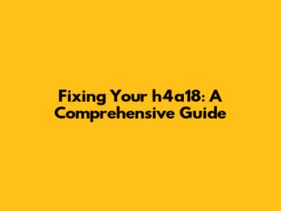 Fixing Your H4a18: A Comprehensive Guide