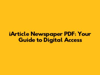 IArticle Newspaper PDF: Your Guide To Digital Access