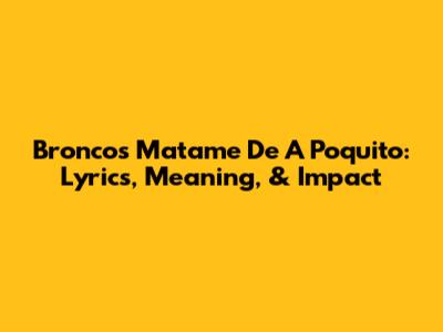 Bronco's 'Matame De A Poquito': Lyrics, Meaning, & Impact