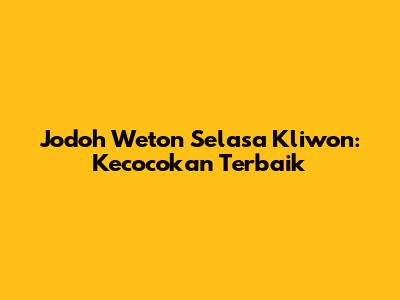 Jodoh Weton Selasa Kliwon: Kecocokan Terbaik