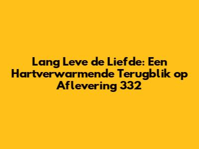 Lang Leve de Liefde 332 was een hartverwarmende en inspirerende aflevering. Het was een perfecte mix van romantiek, humor en emotie. De singles deelden hun verhalen en ervaringen en lieten ons nadenken over de liefde en relaties. De onvergetelijke momenten en de waardevolle lessen maakten deze aflevering tot een must-see voor alle liefhebbers van het programma.