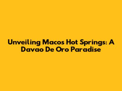 Unveiling Maco's Hot Springs: A Davao De Oro Paradise