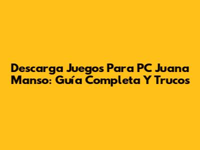 Descarga Juegos Para PC Juana Manso: Guía Completa Y Trucos
