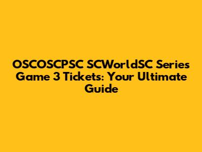 OSCOSCPSC SCWorldSC Series Game 3 Tickets: Your Guide