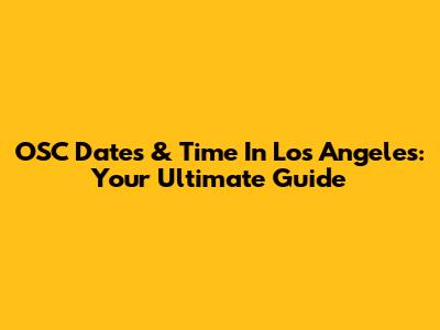 OSC Dates & Time In Los Angeles: Your Ultimate Guide