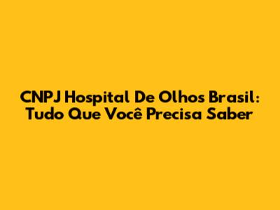 CNPJ Hospital De Olhos Brasil: Tudo Que Você Precisa Saber