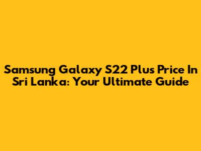 Samsung Galaxy S22 Plus Price In Sri Lanka: Your Ultimate Guide