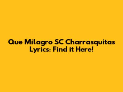 Hey guys! Ever found yourself humming a catchy tune but can't quite catch all the words? Today, we're diving deep into the lyrics of "Que Milagro SC Charrasquitas." Whether you're a die-hard fan or just curious about the song, we've got you covered. Understanding the lyrics can truly enhance your appreciation for the music, adding layers of meaning and emotion that you might have missed before. So, let's explore the words behind the music and uncover the story this song tells!