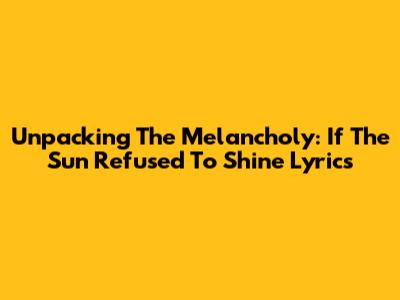 Unpacking The Melancholy: If The Sun Refused To Shine Lyrics