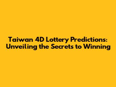 Taiwan 4D Lottery Predictions & Insider Tips