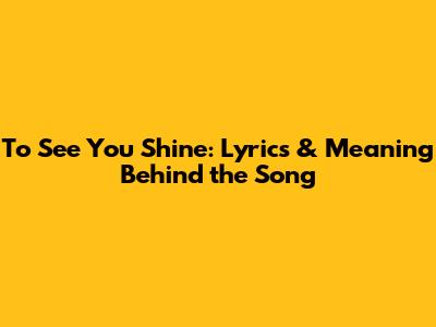 \Hey guys! Today, let's dive deep into the lyrics and meaning of the song "To See You Shine." This track isn't just a melody; it's an anthem about hope, resilience, and the unwavering belief in someone's potential. Whether you're a longtime fan or just discovering this gem, stick around as we unpack every line and uncover the heart of this inspiring song. Understanding the lyrics is key to truly appreciating the song's impact. We’ll explore the emotional landscape painted by the words and how they resonate with listeners on a personal level. So, grab your headphones, and let's get started!