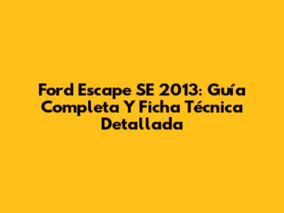 Ford Escape SE 2013: Guía Completa Y Ficha Técnica Detallada