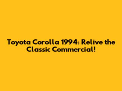 Hey guys! Let's take a trip down memory lane, shall we? Today, we're diving deep into the nostalgia of the Toyota Corolla 1994 commercial. This isn't just about a car; it's about an era, a feeling, and a testament to the enduring appeal of a vehicle that millions grew to love and trust. Buckle up, because we're about to explore why this commercial still resonates with so many people today.