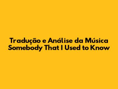 Desvendando as Letras: A Tradução de Somebody That I Used to Know