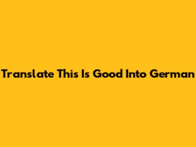 Translate This Is Good Into German