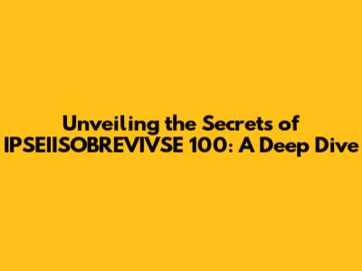 Hey there, data enthusiasts and curious minds! Ever stumbled upon something that just piques your interest, making you want to peel back the layers and uncover its hidden depths? Well, buckle up, because we're about to embark on a thrilling journey to explore the fascinating world of IPSEIISOBREVIVSE 100. This isn't just a random string of characters; it's a doorway to a complex web of information, waiting to be deciphered. In this article, we'll be breaking down IPSEIISOBREVIVSE 100, uncovering its potential meanings, and exploring its significance. Prepare to have your curiosity ignited as we delve into the intricate details and unlock the secrets that lie within. This is going to be an exciting ride, and I'm stoked to have you along for it!
