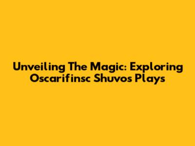 Unveiling The Magic: Exploring Oscarifinsc Shuvo's Plays