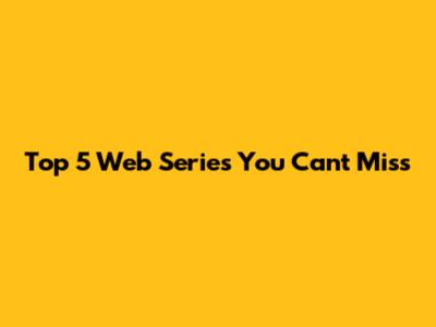 Top 5 Web Series You Can't Miss