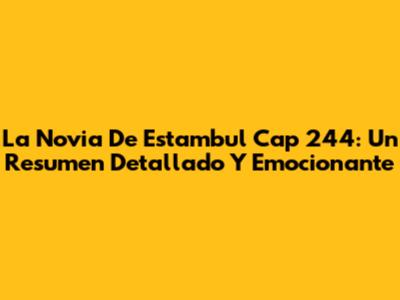 La Novia De Estambul Cap 244: Un Resumen Detallado Y Emocionante